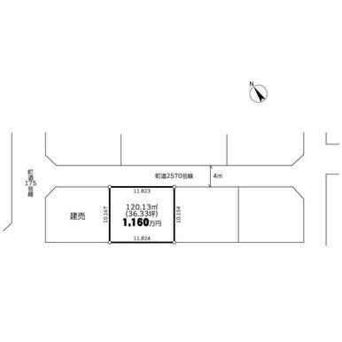 | 土地面積 | 120.13㎡ | 坪数 | 36.33坪 | 坪単価 | 31.93万円 |